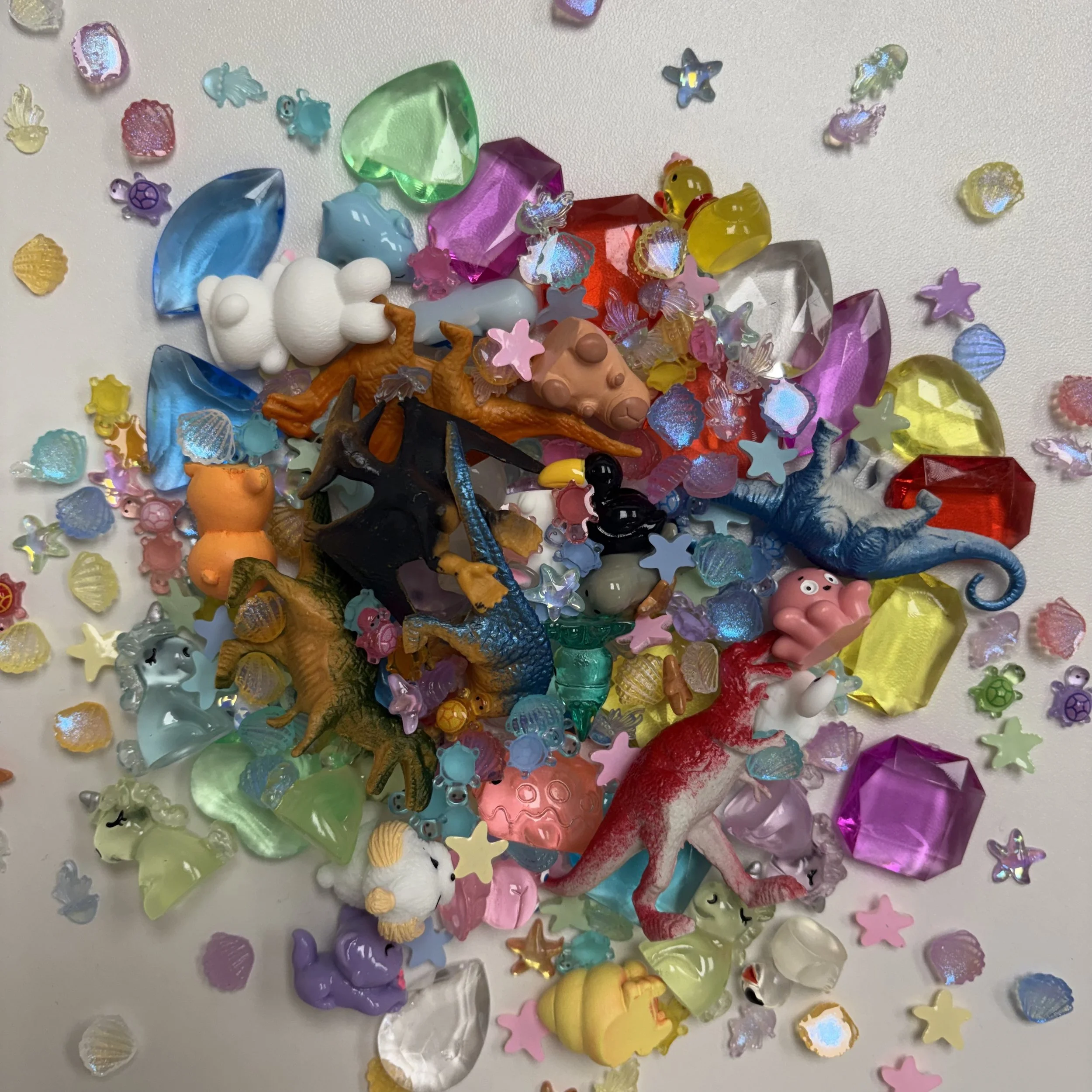 Choose between a wide selection of mini trinkets and glitter.